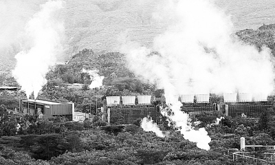 圖為肯尼亞裂谷省的歐卡瑞地熱電廠。該地熱電廠二期擴建工程目前已經完成了70%的地熱井鉆探工作,新的地熱井預計將在兩年內產生280兆瓦的電能?夏醽啅1981年開始開發(fā)地熱資源以來,共鉆探了33口地熱井。由于地熱資源不受氣候因素影響,發(fā)電價格不受國際原油價格波動的干擾,地熱發(fā)電是肯尼亞目前最便宜的發(fā)電方式?夏醽喌責岚l(fā)電資源非常豐富,共有7000兆瓦的地熱發(fā)電潛力。
