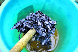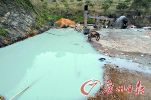 在靠山腳下的一排爐子前面,一個年輕小伙正在焚燒用黑塑料袋裝著的東西?吹接浾呱锨,一位操有粵西口音、年齡在40歲上下的老板模樣的人湊上前來!澳氵@是煉金嗎?”“不是煉金,搞點(diǎn)電鍍廠的廢水。”記者看到有一個盛有金黃色液體的玻璃器皿放在一個鐵盆上。在雨棚一側(cè),還堆有幾十個藍(lán)、黑色的塑料桶,桶口均用塑料袋堵住后,再用蓋子蓋上的。