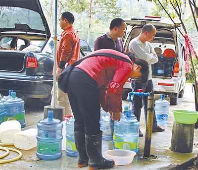 1月31日中午,在廣州市帽峰山腳下的一個(gè)賣(mài)水點(diǎn),一個(gè)上午賣(mài)掉了上千桶水。