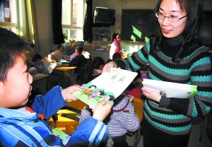 昨天,豐臺五小三年級一班返校的第一天,老師向同學(xué)們分發(fā)了新學(xué)期的音樂課本,這些課本是去年三年級學(xué)生使用過的舊課本。新學(xué)期,這種循環(huán)使用的課本將成為豐臺區(qū)近百所小學(xué)學(xué)生的新學(xué)期禮物,開學(xué)第一天,用上“循環(huán)課本”的學(xué)生們將開始節(jié)約、環(huán)保、低碳的學(xué)習(xí)方式。