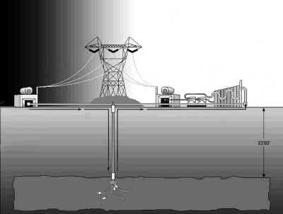 這項(xiàng)技術(shù)被稱之為空氣壓縮能源儲(chǔ)存技術(shù)(CAES),其原理大致如下:利用空氣壓縮機(jī),將大自然之中的空氣吸收壓縮成密度、高壓力大的有效氣壓資源,并儲(chǔ)存穩(wěn)壓。到需要使用時(shí)再通過(guò)放氣閥門和輸氣管道向氣輪機(jī)內(nèi)排放,沖動(dòng)氣輪機(jī)葉輪運(yùn)轉(zhuǎn)并拖動(dòng)發(fā)電機(jī)轉(zhuǎn)子運(yùn)轉(zhuǎn)而發(fā)電。建立一個(gè)300兆瓦的CAES發(fā)電廠需要大約2200萬(wàn)立方英尺的儲(chǔ)存空間,這樣一個(gè)空間儲(chǔ)存的壓縮空氣可以供發(fā)電廠連續(xù)運(yùn)作8小時(shí)。