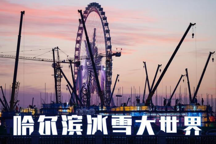 哈爾濱冰雪大世界冰建施工火熱開展中