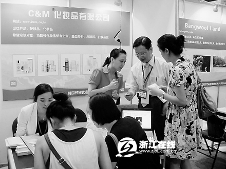 在現(xiàn)場,記者了解到,韓國的化妝品企業(yè)是最受歡迎的。一位美容行業(yè)的林小姐告訴記者,她是專程到現(xiàn)場看韓國化妝品的,尋找有合作意向的韓國企業(yè)。這次展會上有好些韓國化妝品企業(yè),她找了兩家適合她的顧客群的化妝品公司,談了初步意向,打算再抽時間細(xì)談,或許地點會是在韓國。