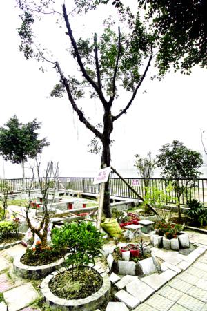“砌椅子的水泥是附近工地送給我的,這些樹是我用幾包煙換來的!”鄭依伯對自己一手建起的“公園”頗有些得意。他每個月也就千把元退休金,所以得力爭花小錢辦好事。鄭依伯人緣好,除了那幾株桂花樹和盆栽鮮花讓他投資了三百多元,其他的石材、花木都來自好心人的饋贈。老人手上那把造型獨特的花鋤,是他這個昔日的“全省勞!闭讨檬炙囉H手做的;那十幾張桌椅,是他自己動手砌的。最后,他還掛上個牌子———“愛護花園人人有責(zé)”。