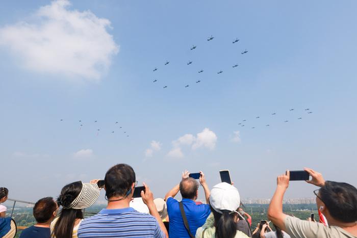 (抗戰(zhàn)勝利80周年)紀(jì)念中國人民抗日戰(zhàn)爭暨世界反法西斯戰(zhàn)爭勝利80周年大會在京舉行 民眾關(guān)注空中梯隊