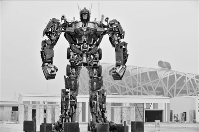 昨天上午,一座高度達到近10米、由廢舊材料拼裝成的“變形金剛”悄然現(xiàn)身于鳥巢北側(cè)廣場。這個大家伙來自臺灣,是目前國內(nèi)最高的變形金剛,將展出到10月10日。