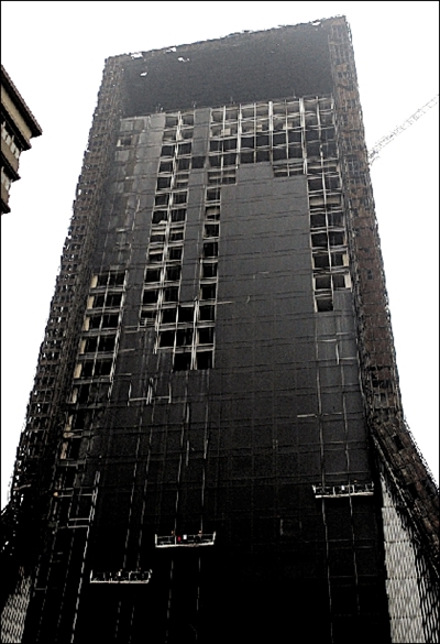 據(jù)附近的居民介紹,央視配樓的修繕工作開(kāi)始至少兩個(gè)月了,每天都有工人從“過(guò)火樓”上扔下很多被燒后廢棄的材料。