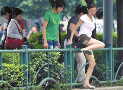 就為了走近路,穿著短裙的美女也顧不上走光的尷尬,從護(hù)欄上一跨而過(guò)。