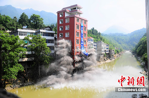 爆破既不能損壞連體的4層樓房,又不能長時間堵塞河道,倒塌距離必須嚴格控制在20米以內,技術要求高。工程施工方采取定向爆破和原地爆破兩種方式同時進行,安裝了60公斤炸藥對房屋實施爆破拆除,此次爆破非常成功,被網(wǎng)友稱為“最!钡暮又羞`章建筑終于強拆。