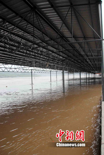 中新網(wǎng)重慶8月24日電 (杜遠(yuǎn) 連肖)新一輪洪峰今天過境重慶主城,當(dāng)?shù)匾恍┑貏?shì)低洼的地段被淹,洪水還使當(dāng)?shù)匾慌R江水果市場部分?jǐn)偽槐谎停尮县湹纳饷墒懿簧贀p失。