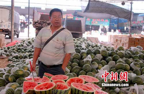 一位從陜西販運(yùn)西瓜到重慶的商販告訴記者,因?yàn)閿偽粋}庫被淹,他們沒了賣瓜的地方,一卡車的西瓜面臨積壓,昨日甚至還有一些瓜販將西瓜擺到公路上“大甩賣”。一位宮姓商販憂心忡忡地告訴記者,受洪峰淹沒攤位影響,加之最近兩天當(dāng)?shù)靥鞖怅幱臧殡S降溫,他的西瓜已從7角錢一斤降到5毛。(完)