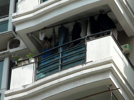住在小區(qū)2號(hào)樓的老王目擊了整個(gè)過程。“他當(dāng)時(shí)半蹲著,雙手緊抓著陽臺(tái)護(hù)欄,雙腳踩在陽臺(tái)外側(cè)的邊沿上!崩贤跻贿吥7履凶赢(dāng)時(shí)的姿勢(shì),一邊說,“他嘴里一直在喊救命,小區(qū)門口的保安聽到后趕緊往那邊跑,我也趕過去想幫助救人。保安剛到樓下,那小伙子的左腳突然滑下來,他往上蹬了幾下,沒蹬上去,右腳也跟著滑了下來,僅靠雙手抓住護(hù)欄。沒幾秒鐘,人就摔了下來!