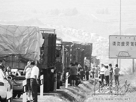 在乘坐的客車駛離上述堵車路段時,記者又看了一下時間:9月1日17時11分。也就是說,“車龍”里有的大貨車至少被堵了3個多小時。