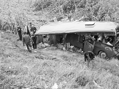 傷勢(shì)較輕的乘客楊先生回憶說(shuō),早上9點(diǎn)多,該中巴車(chē)滿載乘客從海石灣出發(fā),大約十多分鐘后,車(chē)行駛到旋子村段。這時(shí),前面突然來(lái)了一輛車(chē),在會(huì)車(chē)過(guò)程中,中巴車(chē)司機(jī)朝右打了方向盤(pán)。由于下雨路滑,客車(chē)竟沖過(guò)護(hù)欄沿斜坡向玉米地沖了下去,車(chē)上乘客嚇得大叫,后來(lái)他就什么也不知道了。當(dāng)他反應(yīng)過(guò)來(lái)時(shí),只見(jiàn)車(chē)頂不見(jiàn)了,車(chē)身倒在玉米地內(nèi),現(xiàn)場(chǎng)亂作一團(tuán)。有的乘客從車(chē)窗里爬了出來(lái),傷勢(shì)較輕的乘客還主動(dòng)營(yíng)救重傷員,大家用手機(jī)撥打120和110求援。