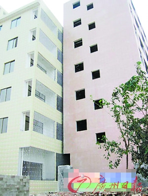 “西安那個‘樓擠擠’畢竟還有近一米的間距,握個手還要彎腰伸手才夠得著,可在我們這里,這兩棟樓的間距估計還不到10厘米,一對情侶站在兩棟樓的陽臺上不用彎腰就可以臉貼臉地擁抱了!”這位爆料網(wǎng)友稱,繼“樓倒倒”、“樓歪歪”后,又出現(xiàn)了“樓抱抱”的新景觀。