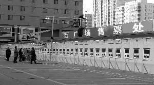 經(jīng)過5天房屋搭建和設(shè)備調(diào)試,昨日,北京西站北廣場西側(cè),由社會(huì)停車場改造的臨時(shí)售票處啟用。