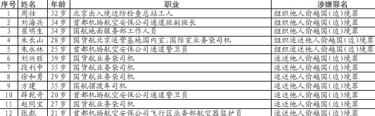 此外,案發(fā)時,還有其他4名機場內(nèi)部工作人員協(xié)助作案。他們分別是:國貨航業(yè)務(wù)袋司機段利中、國航擺渡車司機方建、首都機場安保公司通道警衛(wèi)員薛乾奇及航空器監(jiān)護員張彪。