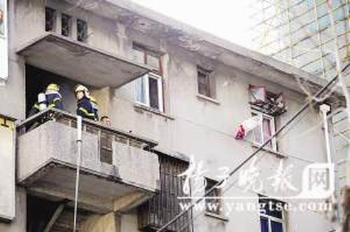 昨天下午2點(diǎn)半鐘左右,在南京下關(guān)區(qū)鐵路北街新民村33號(hào)住宅樓前圍了許多群眾,警方在通往居民樓的通道外拉起了警戒線,禁止無關(guān)人員進(jìn)入,在警戒線內(nèi)的地上放著一瓶液化氣,此時(shí)消防隊(duì)員仍在來回穿梭地忙碌著。住在四樓的一位居民稱,著火的是6樓的一戶人家,好像是有人縱火。如果不是5樓的一位大媽及時(shí)發(fā)現(xiàn)大聲喊叫,大家還都不知道。