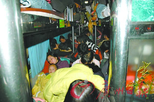 公路客運(yùn)高峰昨日殺到,記者從省公安廳交通管理局獲悉,春運(yùn)總體形勢平穩(wěn),但春運(yùn)道路安全形勢不容樂觀,省內(nèi)交警部門在路面執(zhí)勤中連續(xù)查處嚴(yán)重超載行為,最離譜的客車核載39人,竟塞進(jìn)了101人。而且還出現(xiàn)了超載客車相互串通、聯(lián)合闖關(guān)等情況,甚至有些無良司機(jī)為躲避檢查,在經(jīng)過檢查點(diǎn)時將乘客塞入行李廂。省交管局重申,超載行為是今年春運(yùn)交通檢查的重點(diǎn),除了對車上乘客進(jìn)行檢查,客車行李廂也是檢查重點(diǎn)。