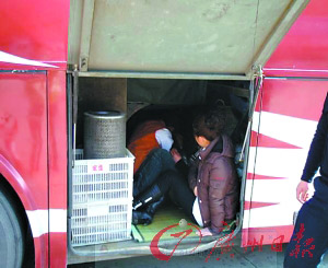 1月13日上午11時,東莞麻涌春運(yùn)執(zhí)勤點(diǎn)執(zhí)勤民警對一輛號牌為湘F06266的客車進(jìn)行例行檢查發(fā)現(xiàn),該車的行李廂有異樣,打開一看行李廂中竟藏了一個大活人?蛙囁緳C(jī)卻表示不知道這個人何時上車。經(jīng)過對司機(jī)和藏匿乘客的訊問,司機(jī)王某某終于承認(rèn)自己為賺取路費(fèi)甘愿冒險。