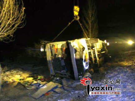1月17日凌晨3時許,在大雪中,一輛載有35名乘客的大客車從塔城和豐縣開往烏魯木齊時,途經(jīng)312國道4251公里處(呼圖壁縣境內)時與一輛大貨車迎面相撞,致使大客車側翻路基下,3人死亡,25人受傷。該事故還致使另外4輛車發(fā)生連環(huán)相撞。