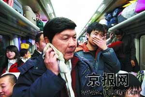 從出發(fā)前5個小時開始,他便張羅著買了一大堆車上要吃的水果以及方便面等食品,并特地買了兩瓶高純度的北京“二鍋頭”和兩個金屬馬扎兒。他告訴我,這是在列車上“過關”的法寶,“所謂糧草先行,馬扎兒隨身帶”。但當走到北京西站廣場,看到里面的“人!,我對老孟的乘車“預案”有些不以為然。