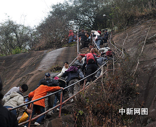 記者在登山的時(shí)候,發(fā)現(xiàn)了一撥來(lái)自四川災(zāi)區(qū)的同胞們也趕至丹霞山慶新年。他們是曾氏家族、四世同堂30多人浩浩蕩蕩地開(kāi)著五部車從成都慕名來(lái)到丹霞山,他們?cè)谶@雄偉壯觀的丹霞美景的面前,也許下了對(duì)四川、對(duì)祖國(guó)的美好新年祝愿:“丹霞最美、丹霞最牛、四川雄起、祖國(guó)昌盛”!