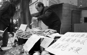 “我賣水果正好20年,別的業(yè)余愛好沒有,就是收攤后回家看看書、寫寫字!崩贤踅衲40歲,北碚區(qū)柳蔭鎮(zhèn)人。是江北中學1989屆畢業(yè)生。由于家境貧困,高中剛剛畢業(yè)的他就開始了販水果的生涯。
