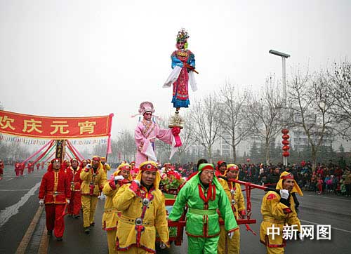 中新網(wǎng)周村2月9日電(記者 鞠成利 楊東亮 通訊員 王帝)今天上午,百年商埠山東省淄博市周村區(qū)元宵節(jié)民間藝術(shù)展演的現(xiàn)場熙熙攘攘,熱鬧非凡。踩高蹺、威風(fēng)鑼鼓、舞龍燈,以及地方特色周村芯子……來自周村區(qū)4個街道辦事處20多個社區(qū)的民間藝術(shù)表演隊(duì)伍紛紛拿出自己的看家本事,為全區(qū)百姓帶來一場聲勢浩大、喜氣洋洋的元宵節(jié)民俗盛宴。