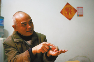 本月11日,記者在歇臺(tái)子附近一間寬敞的民房里見到鄒育林,滿頭白發(fā),一臉滄桑,63歲的他看起來比一些同齡人出老很多!拔医o朋友保證了,欠他們的錢,連利息,我一定會(huì)還清的!