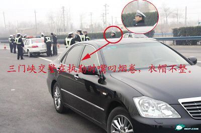 在帖子中,“一鍵盤敲死你”稱,開車經(jīng)過三門峽時被交警攔下,由于他車牌上的一顆螺絲釘遺失,交警為此罰款2000元,還沒有給任何收據(jù)。無奈之下自己稱沒錢,交警便沒收了他的車載GPS等車載電器。他還稱,交警隊(duì)員曾對他口吐污言穢語,并且交警衣帽不整、酒氣熏天。在網(wǎng)友用手機(jī)拍下的照片中可以看到,有一位交警嘴里叼著香煙,另有一位交警沒戴帽子在與司機(jī)交談。