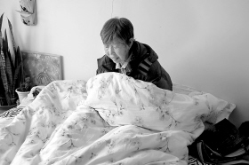 “我昨晚上是被凍醒的……”市民李女士說,20日晚,她在睡夢中被凍醒。“從19日晚上開始,我們家屋子里面的暖氣片就幾乎是涼的了!痹诮鸷踊▓@小區(qū),一居民一家三口擠在一張床上身穿棉衣、蓋著棉被看電視,溫度計上顯示屋里的溫度僅為7℃。