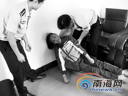 符某某被帶到上埇派出所接受調(diào)查。據(jù)該女子交代,她姓符,老公是萬寧東澳人,此次來瓊海尋找老公。警方告訴記者,該女子曾在海南多處多次作案,每次被抓都是老一套:自稱來找老公,自稱有病。說話間,那女子突然倒在地上,口吐白沫。民警告訴記者:“這個女人只是吐出唾沫掛在嘴角裝樣子,不是癲癇病發(fā)作!惫,5分鐘后,該女子停止抽搐,自動坐到座位上。