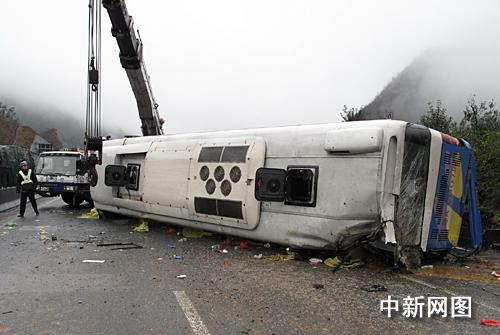 據韶關警方稱:這輛牌號為粵AC00七九號豪華大客車(司助兩人),是六日凌晨五時從廣州羅崗搭載游客四十人(其中一名導游)前往湖南衡山的。于八點五十分途經京珠高速公路粵北段北行三十七KM處時,車輛碰撞右側花基后向左側翻,造成駕駛員岑權(男)及兩名乘客(一男一女)當場死亡,無人員重傷,十七名乘客輕微傷(均已送醫(yī)院檢查治療)的交通事故。