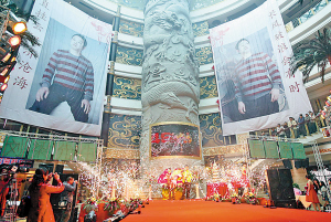 “海報(bào)上的人就是今天的壽星!爆F(xiàn)場(chǎng)賓客告訴記者,劉梁資產(chǎn)過億,作為回禮,給每位來賓發(fā)了一個(gè)精致的水晶煙灰缸,“這筆開銷就上10萬元。算上酒水,每桌酒席要3000元以上!
