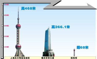 長江重慶航道局人士稱,目前,國內(nèi)已建成的內(nèi)河最高塔在揚(yáng)州,高66.9米。建這個(gè)塔的首要目的是導(dǎo)航,因?yàn)槿龒{水位上漲后,目前庫區(qū)最高的導(dǎo)航塔只有15米,已不能適應(yīng)導(dǎo)航之需。在重慶兩江交匯處建設(shè)超68米的高塔,可滿足江面導(dǎo)航需要,不是為了追求形象。