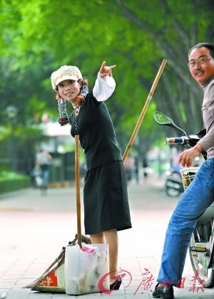 近日,有網(wǎng)友在天涯論壇上發(fā)帖,感嘆她是“最美麗、最時(shí)尚的清潔工”。