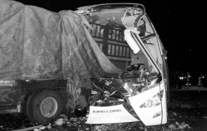 2008年11月15日16時40分,哈同公路哈爾濱依蘭段,一輛超載的金龍客車在上坡路側(cè)翻,造成11人死亡、39人受傷。