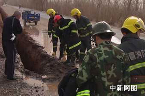 救援力量到達(dá)現(xiàn)場(chǎng)后,一股刺鼻的氣味撲面而來(lái),并伴隨著“哧哧”的聲響,道路離泄露點(diǎn)100米處就是接待游客的吐魯番市麥西來(lái)甫風(fēng)情園,此時(shí)正在進(jìn)行開(kāi)業(yè)前裝修、裝飾,道路兩邊是正在給葡萄開(kāi)墩的農(nóng)民,一旦發(fā)生爆炸,后果不堪設(shè)想。經(jīng)偵察:天燃?xì)庑孤兜攸c(diǎn)位于麥西來(lái)甫風(fēng)情園西北角100米處道路北側(cè)一溝內(nèi)。指揮員立即命令:警戒小組劃定警戒區(qū)域,疏散附近人員,嚴(yán)格控制進(jìn)入現(xiàn)場(chǎng)人員。從東風(fēng)車出一支水槍對(duì)泄漏處進(jìn)行稀釋并及時(shí)通知燃?xì)夤矩?fù)責(zé)人、技術(shù)人員到現(xiàn)場(chǎng)處置。