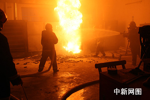 幾分鐘后,指揮員確認(rèn)粉塵密度已經(jīng)降到爆炸點(diǎn)以下,果斷命令戰(zhàn)斗班長用撓鉤將烘箱門緩緩打開。由于粉塵和空氣混合,在高溫的作用下從烘箱內(nèi)爆出一團(tuán)團(tuán)火焰,形狀似蘑菇云將廠房屋頂擊穿,在廠房頂部留下一個(gè)20多平米的大洞,一名戰(zhàn)士被烘燃引起的沖擊波擊倒在地,廠房內(nèi)一片狼藉。