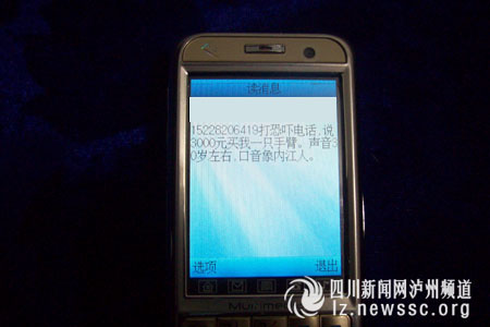 3月31日下午4點40分,瀘州市江陽區(qū)北城派出所接到群眾報警稱,一家商行女老板遭遇一個帶內(nèi)江口音的男子恐嚇:“3000元買你一只手臂,等你的手臂不動了,你就知道我是誰了。”目前,警方已介入調(diào)查。是為情所困,還是因財生異,亦或另有隱情?