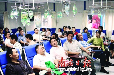 在坪地醫(yī)院的急診室里,五六十名工人正在輸液。向先生對記者說,他們被送過來之后,醫(yī)生只是給他們輸了液,三個小時了也沒有人來給他們做一個檢查!搬t(yī)生說在給我們輸?shù)囊后w里邊加了藥,但是都沒有檢查,你加的是什么藥?”文先生告訴記者,還有幾十個人被送到龍崗中心醫(yī)院。