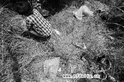 昨日下午,蔣某雨等4人帶記者來到事發(fā)地點(diǎn)。記者發(fā)現(xiàn),此處距最近的工廠約700多米,馬路上車來車往,但很少有行人經(jīng)過。馬路邊坡下的草叢約一米多高,從坡上很難發(fā)現(xiàn)藏在草叢中的人。幾只鞋和一條皮帶散落在草叢中,蔣某雨說,還有些鞋和褲子被警察拿走了。