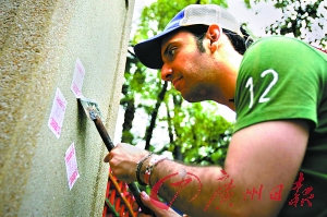 “五一”前夕,廣州市環(huán)衛(wèi)局組織起在穗外籍人士體驗環(huán)衛(wèi)工作,使更多的人理解和支持環(huán)衛(wèi)工作,同時也反映出普通環(huán)衛(wèi)工人對城市建設貢獻的點點滴滴。羅密歐自愿參加了這次活動,短短半日時間,他除了清掃馬路外,還嘗試了鏟“牛皮癬”、乘坐小黃車收運垃圾和到居民樓收垃圾袋等環(huán)衛(wèi)工作!俺隽艘簧砗,比去健身房效果好多了。我現(xiàn)在想去洗澡!”工作完畢后,羅密歐用流利的中文笑著告訴記者,還一邊擺出“鬼馬”的造型,讓人忍俊不禁。羅密歐今年30出頭,來廣州已兩年半,現(xiàn)在是一家意大利餐館的副董事長兼市場總監(jiān),偶爾也會在廣州的英語電視節(jié)目上客串主持。他說,其實環(huán)衛(wèi)工作對他來說不算十分新鮮,“我18歲中學畢業(yè)后第一份工就是室內(nèi)保潔,所以對環(huán)衛(wèi)工人的辛苦我有同感。”
