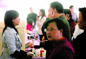 “你好,可以和你聊聊嗎?”這樣的開場(chǎng)白在昨日聽得最多。當(dāng)看到自己心儀的對(duì)象后,大多男女都會(huì)大方地向?qū)Ψ桨l(fā)出邀請(qǐng),F(xiàn)場(chǎng)的展板上張貼了每個(gè)人的詳細(xì)資料,方便大家“按圖索驥”。