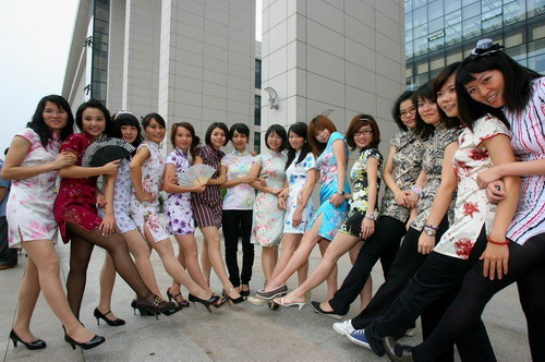 女生穿著溫婉的方襟旗袍,男生一襲唐裝溫文爾雅……廣州大學新聞學院學生的畢業(yè)留影,被貼上網后,成為近日各網站論壇的熱點。“每年拍畢業(yè)照都穿西方學士袍有點老土,大學生決定搞搞新意思!钡x擇“短旗袍”,有人指責太暴露,有辱斯文。網友們卻認為這指責未免太“上綱上線,極度無聊!