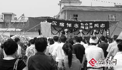 昨日上午11點(diǎn),包志堅(jiān)、周湛萍的追悼會(huì)在盈江縣人民醫(yī)院新家屬小區(qū)內(nèi)舉行,來自社會(huì)各界的上千人自發(fā)前來沉痛悼念,不時(shí)有單位、個(gè)人的花圈送抵現(xiàn)場(chǎng)。