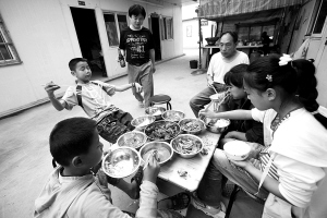 他不會做飯。每次她做好飯之后,就讓女兒喊“眼鏡叔叔”和哥哥弟弟一起來吃。3個孩子一起進了八一帳篷小學,每個周末,他負責接送。