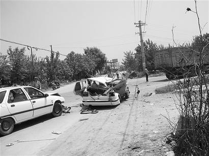 據(jù)附近廢品收購(gòu)點(diǎn)的一位目擊者稱(chēng),昨日上午10點(diǎn)55分,106國(guó)道新(洲)徐(古)公路交叉處,一輛白色捷達(dá)小轎車(chē)沿新徐公路自東向西疾馳,與沿106國(guó)道由北而南駛來(lái)的一輛重型自卸貨車(chē)相撞。轎車(chē)右后側(cè)被撞后發(fā)生180度大旋轉(zhuǎn),隨后又撞到路邊一輛停著的小車(chē)方才停下。據(jù)悉,捷達(dá)小轎車(chē)上有四男一女,司機(jī)鄭某受傷,兩男當(dāng)場(chǎng)身亡,另一男一女被送往醫(yī)院,其中男子在送醫(yī)途中死亡。