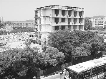 記者在現(xiàn)場看到,卓刀泉北路臨湖一側(cè)的拆遷廢墟上,高高豎著原省機(jī)械設(shè)備進(jìn)出口公司一棟宿舍樓!按髽莾(nèi)42戶居民搬走了41戶,獨(dú)一家賴著不走,待拆大樓直接影響了管線遷移、道路和樁基工程!惫夤韧顿Y有限公司該項(xiàng)目負(fù)責(zé)人王興昌焦急地說。